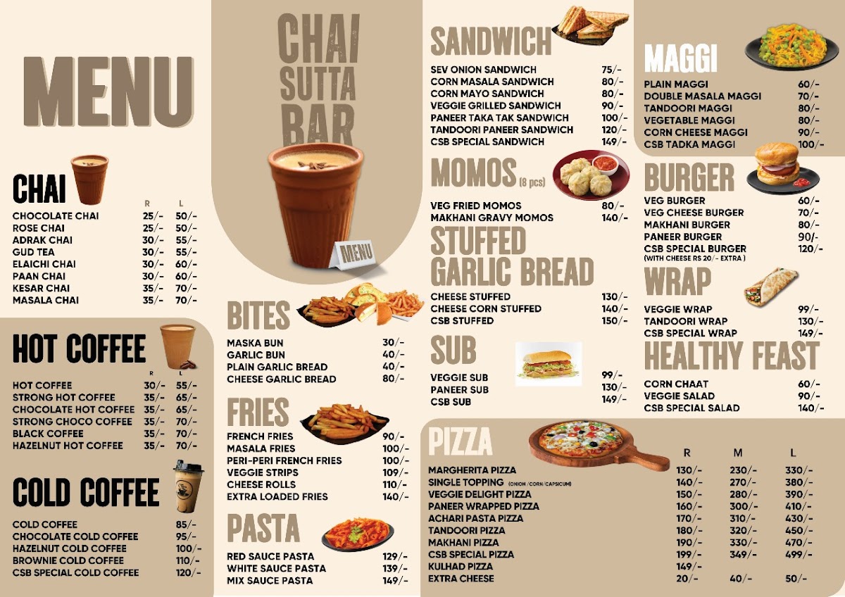 Chai Sutta Bar Kot Kapura ਚਹ ਸਟ ਬਰ ਕਟ ਕਪਰ Menu